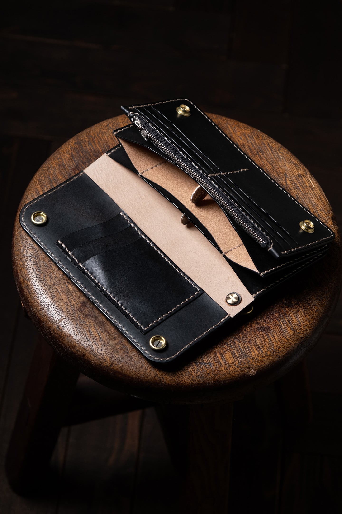 ステッチや金具のカラー、ホックの種類を選んでオリジナルのトラッカーウォレットを制作できます。
