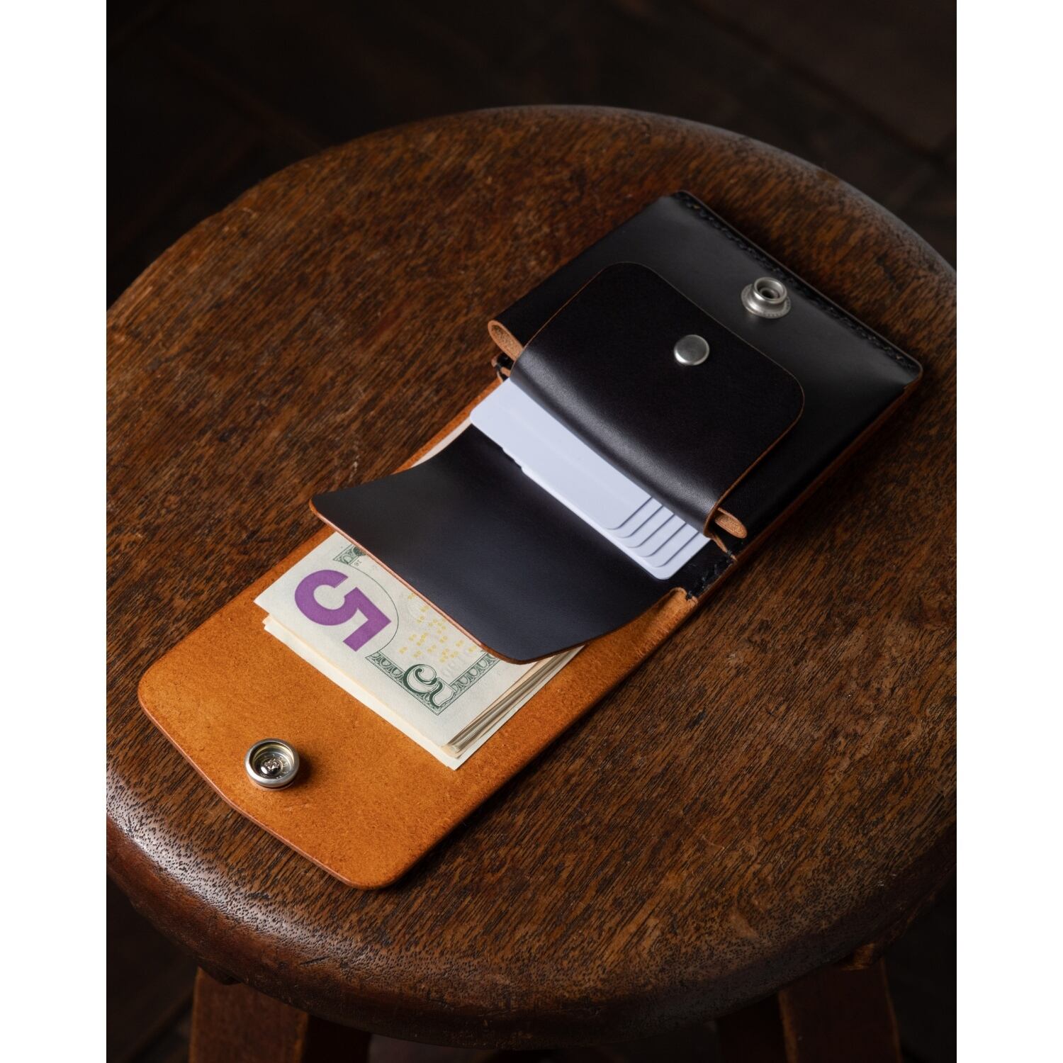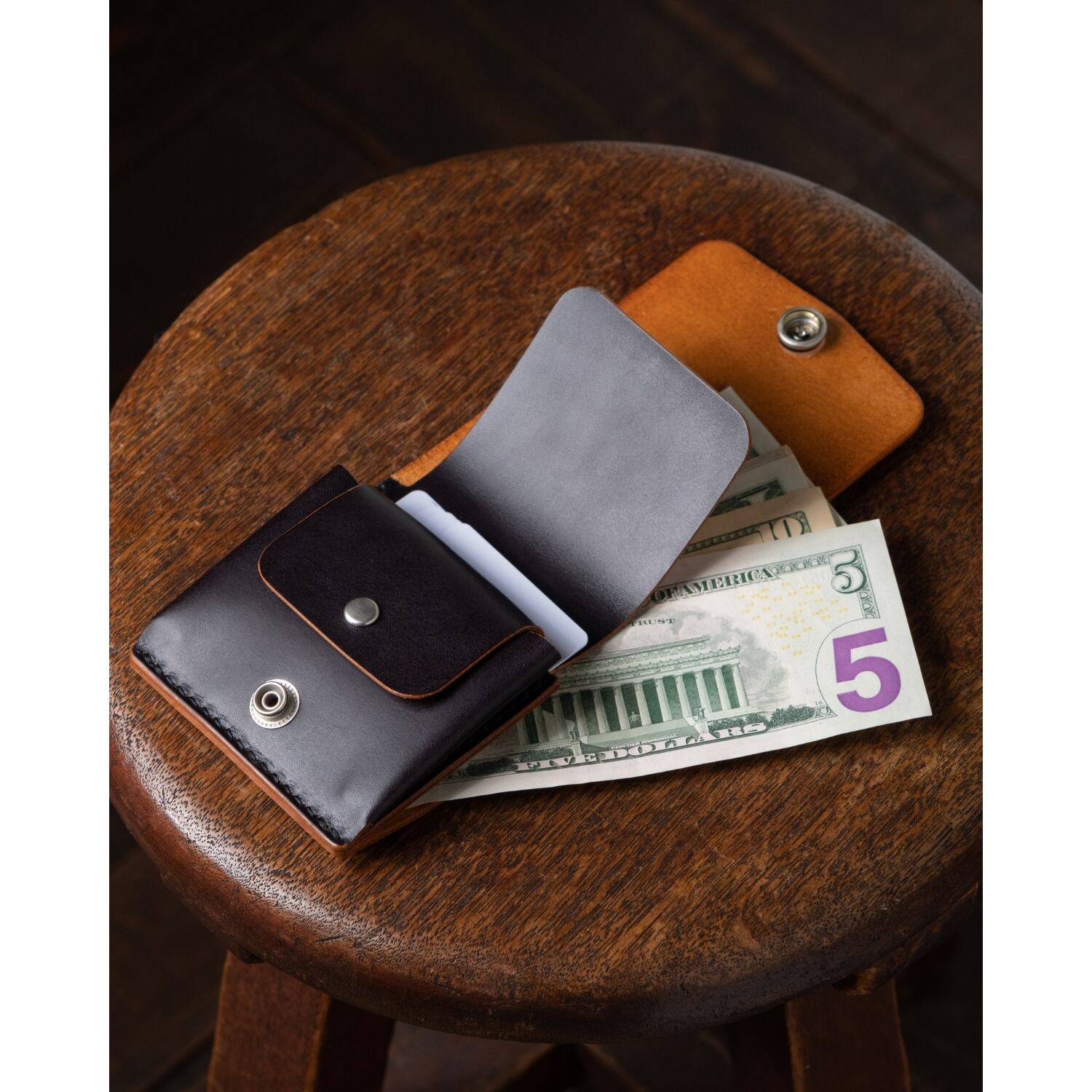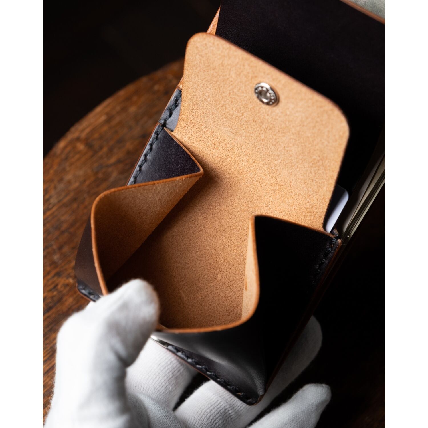 札入れ1箇所、カード収納1ポケット、小銭収納1箇所のシンプルなコンパクトウォレット。