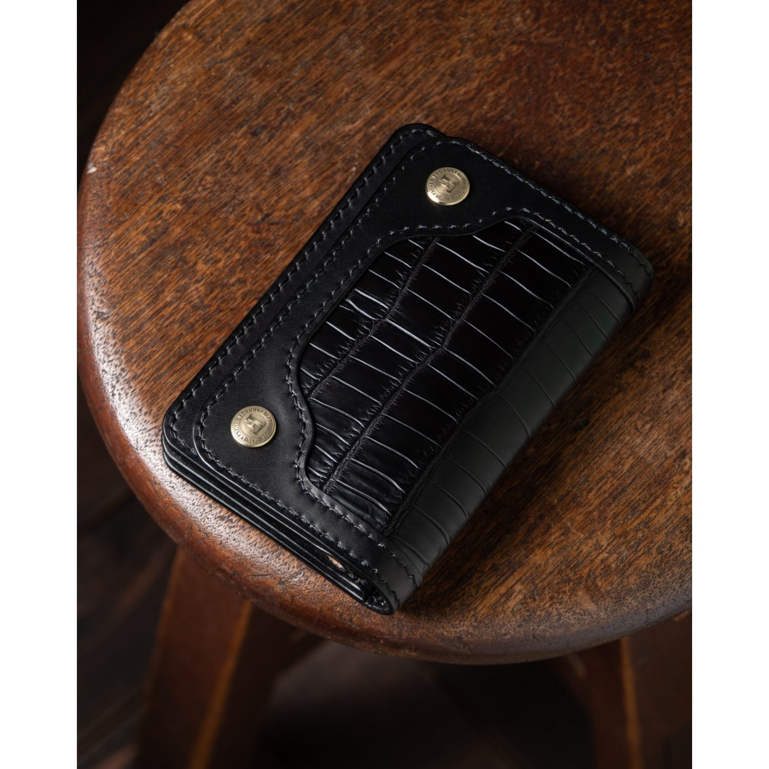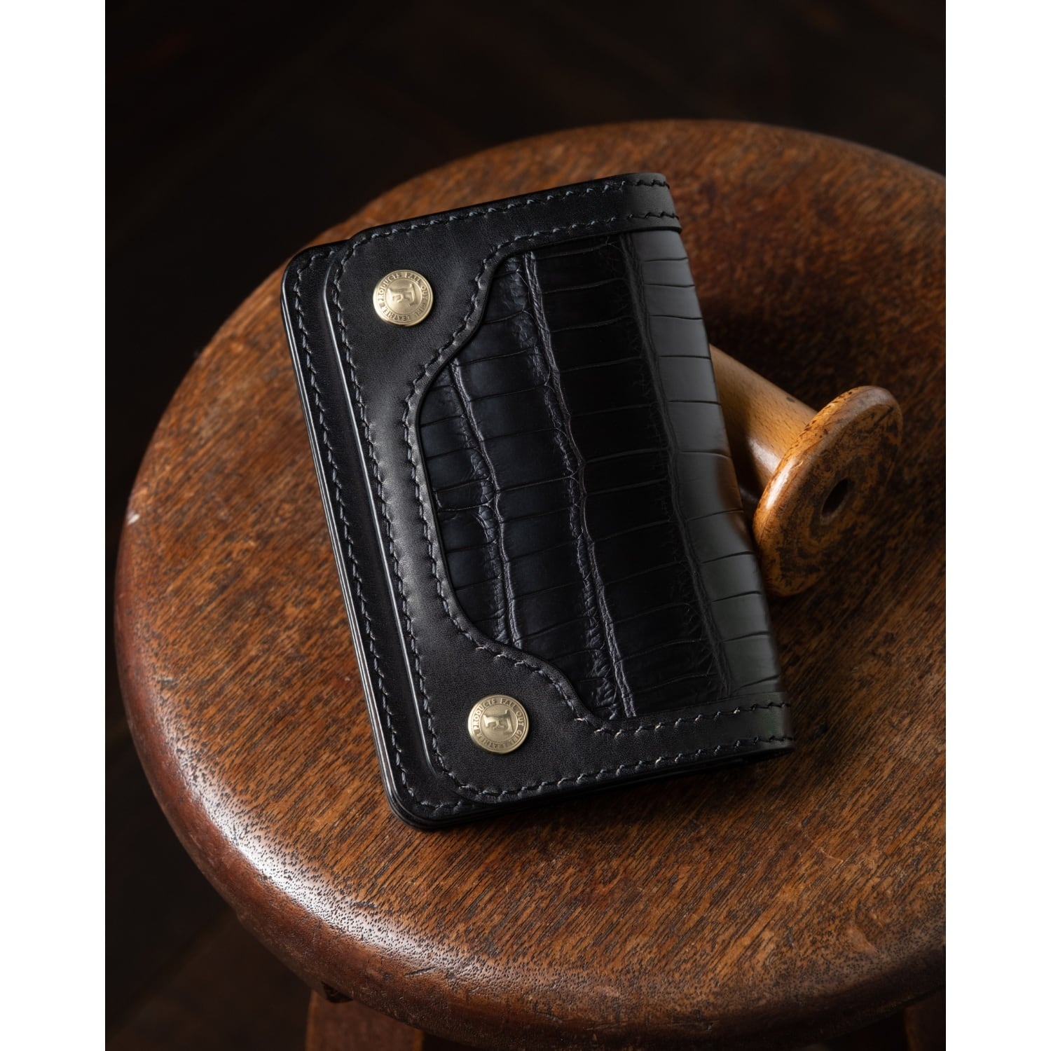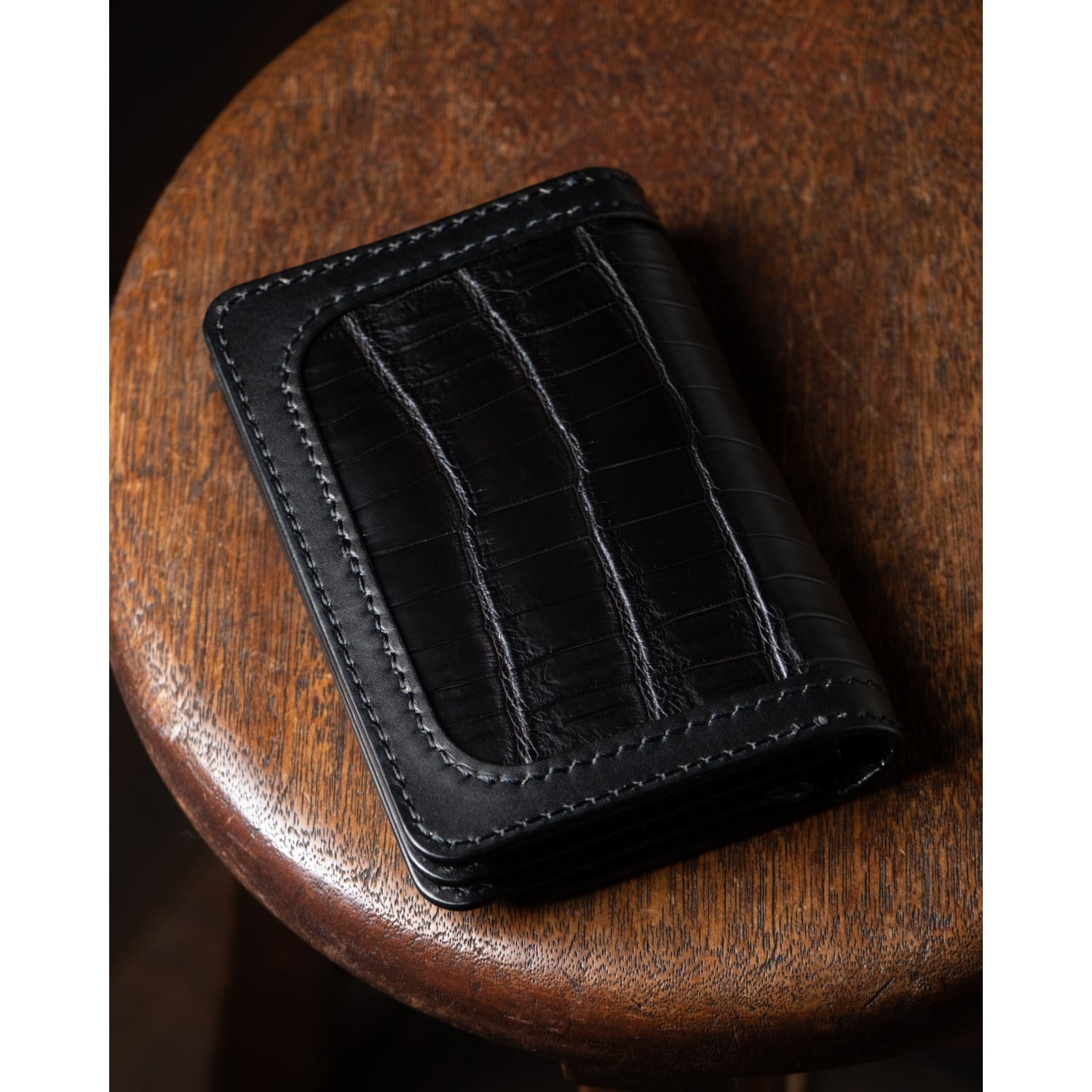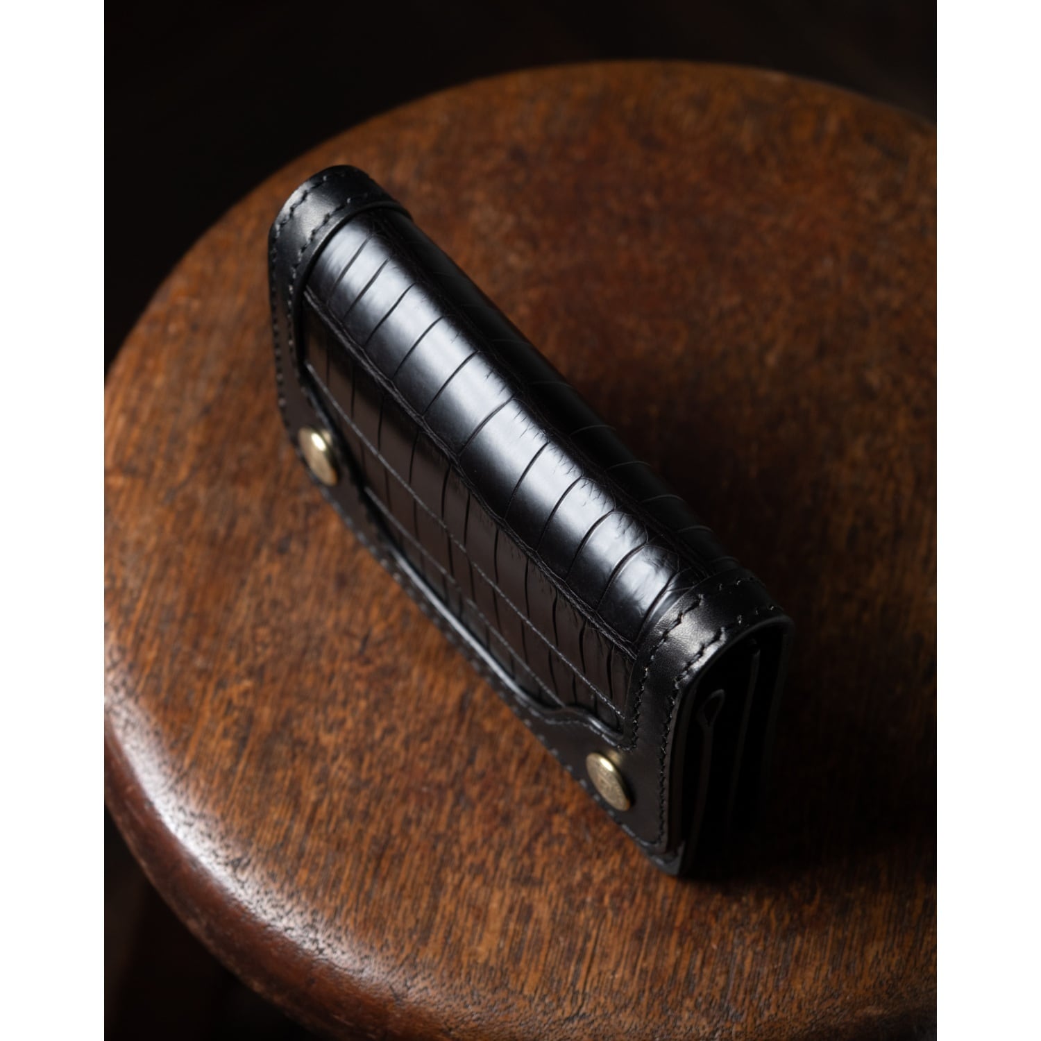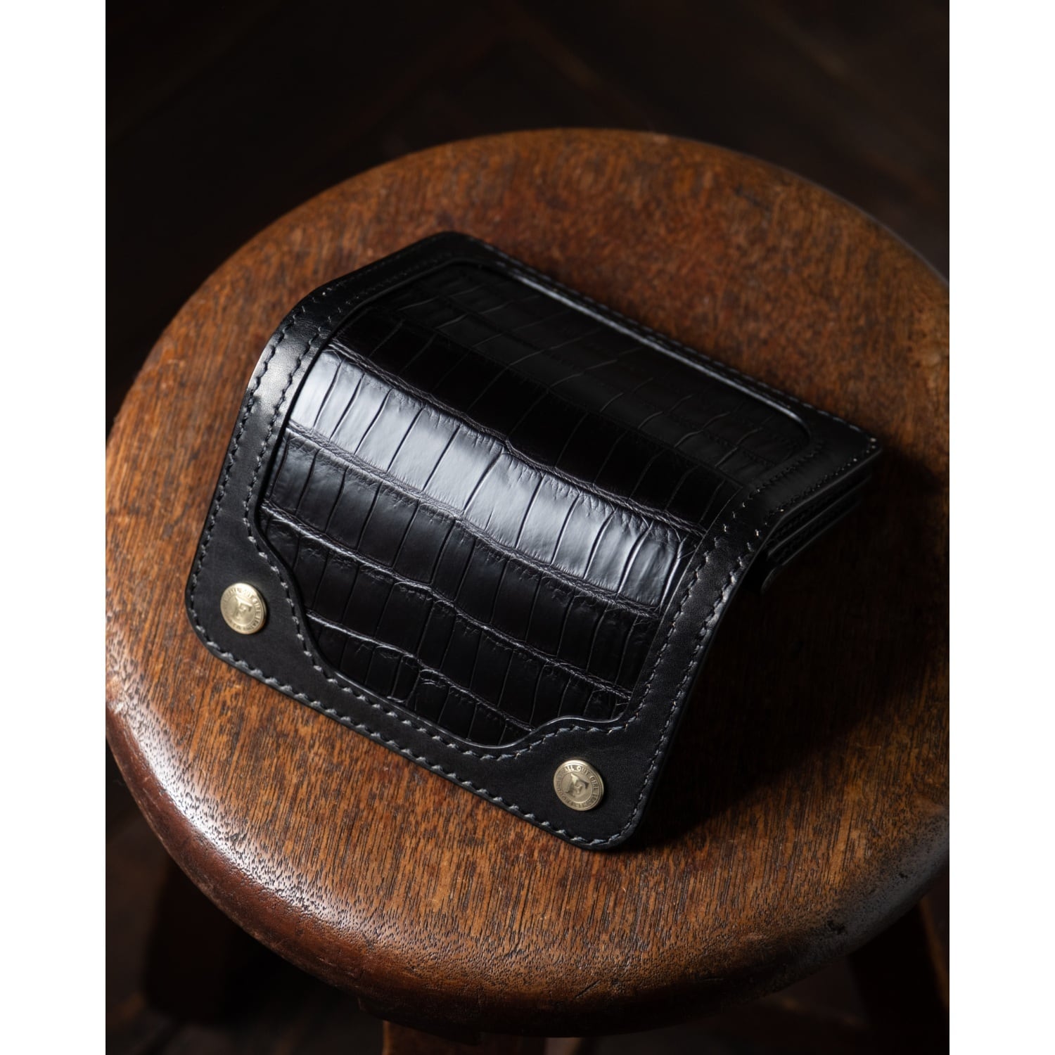 外装をインレイ仕様の背割りクロコダイルにて仕立てました。