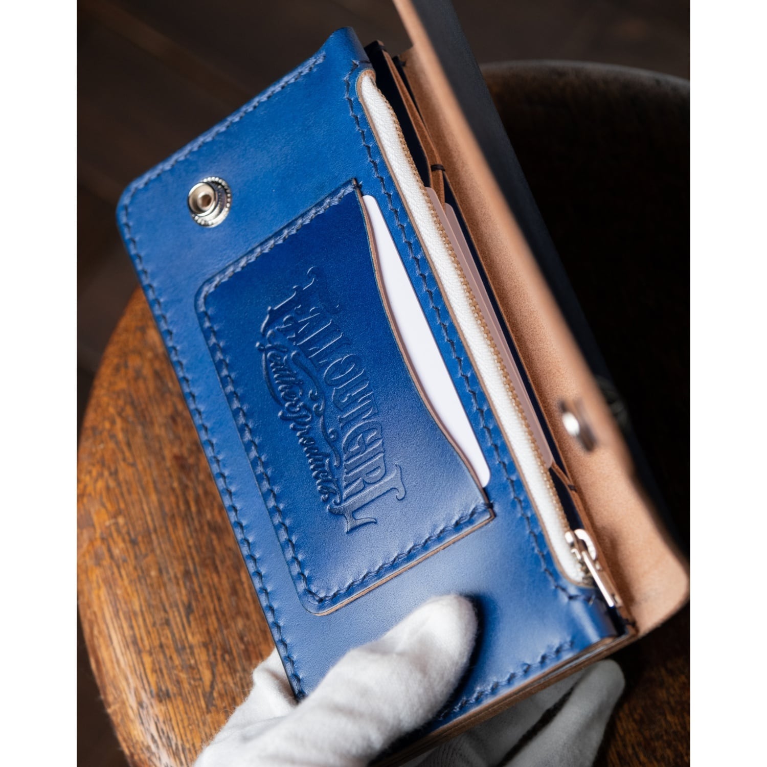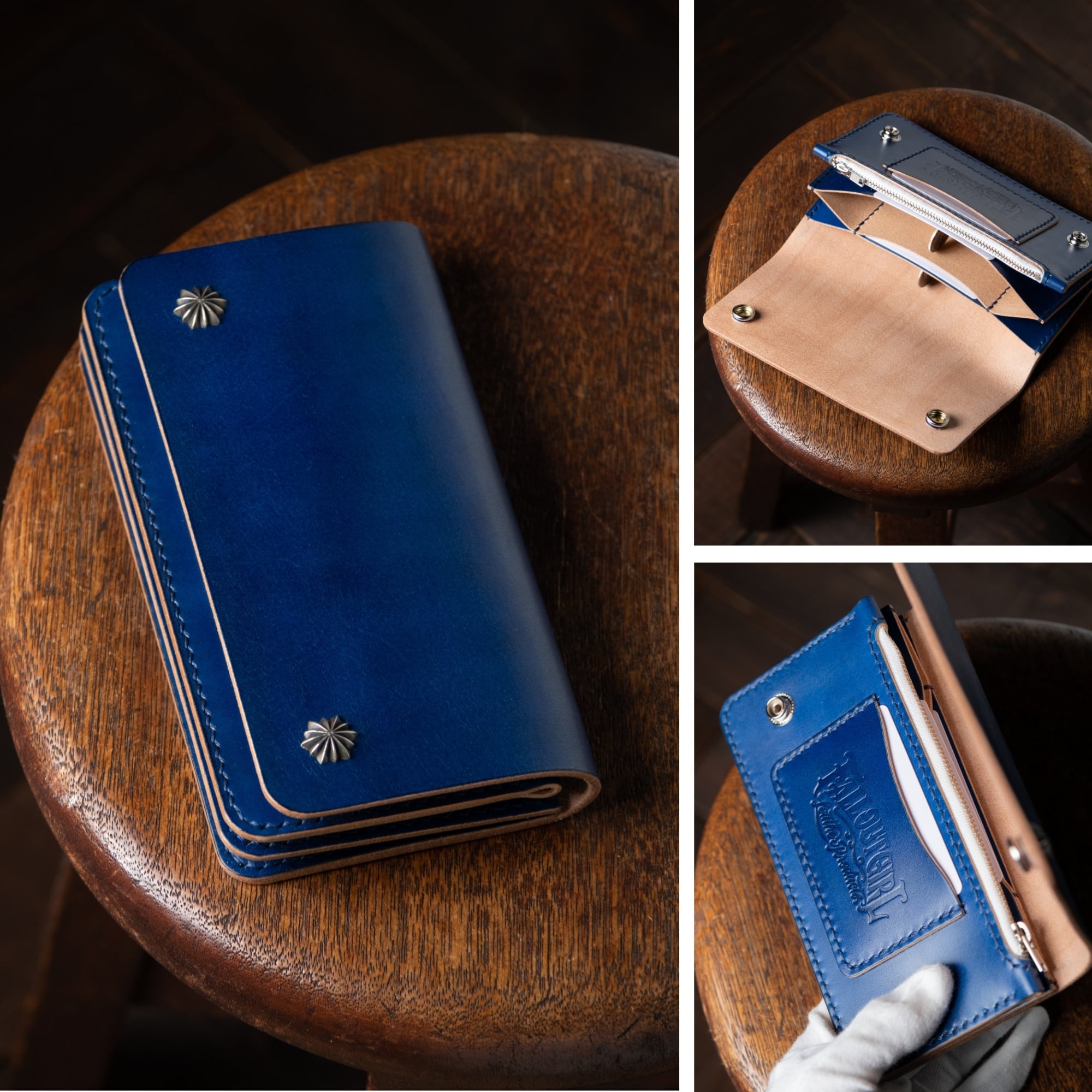 ・国産ヌメ革(牛革) 手染めロイヤルブルー
