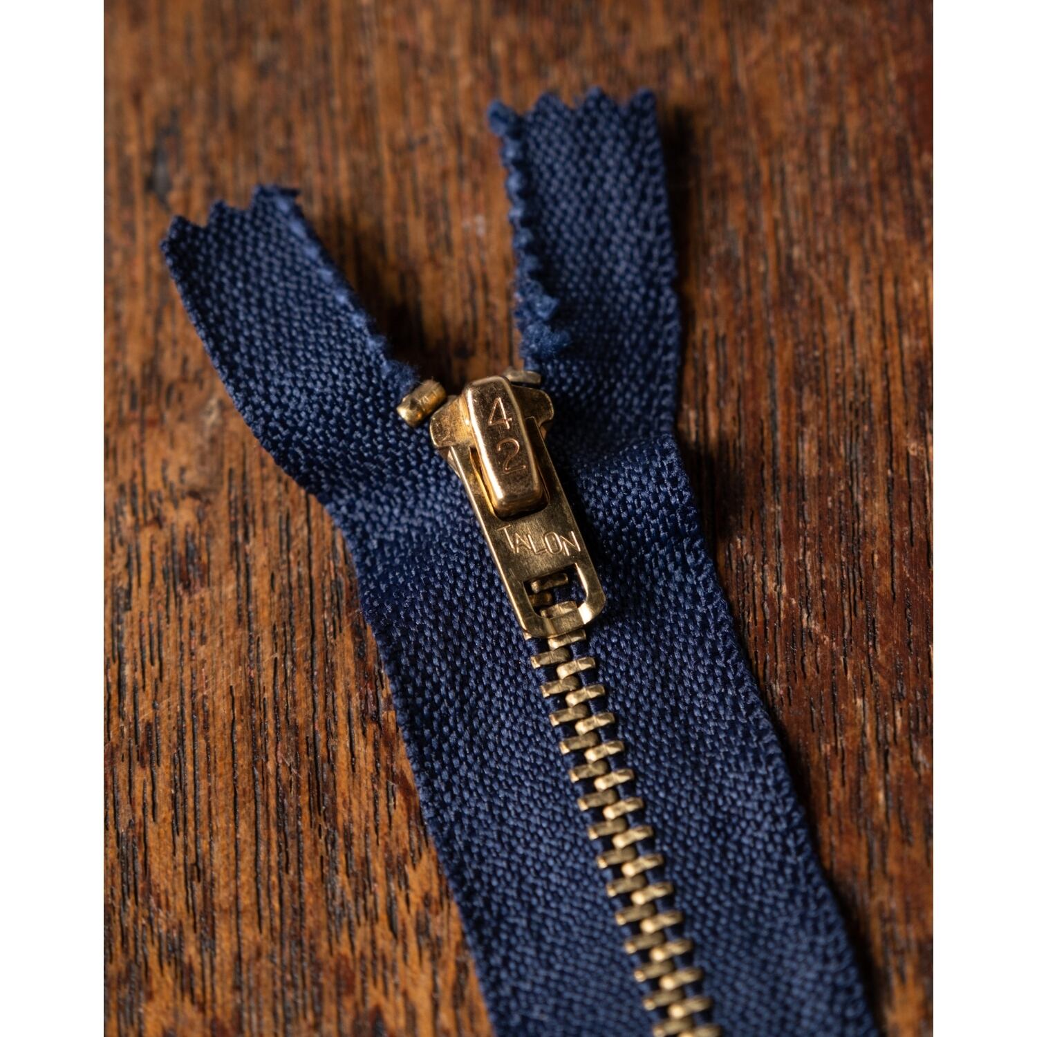 真鍮素材のロック式スライダー42talonに、70年代のアメリカ製ideal社のテープを組み合わせたジッパー。